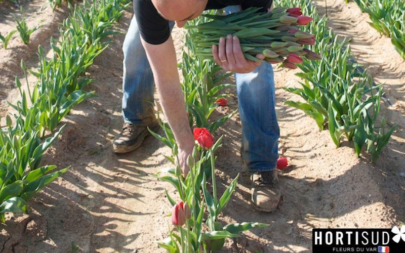 Récolte de la fleur de mars à mai : la tulipe coupée. Cette appellation fait référence à l’opération qui consiste à couper la fleur tout en laissant le bulbe en terre orné de quelques feuilles. On obtiendra ainsi la formation d’un nouveau bulbe. Arrachage au mois de juin